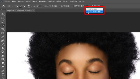 今回は髪の毛を切り抜くときに残ってしまった境界線のゴミをきれいにする方法を解説します。今回使うのは下の画像。モデルの髪の色や背景の色などで結果が変わるのでその点は注意しましょう。