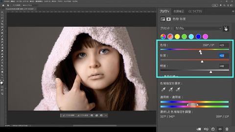 「色相・彩度」で、質感そのままに美肌補正できる!