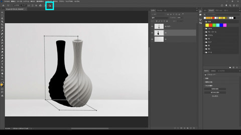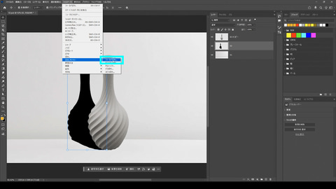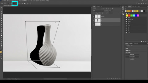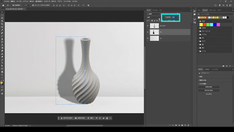 商品のモックアップを作る時などに使える「遠近法ワープ」を使った影の形の作り方を解説します。台座の上に商品を置いたようなビジュアルを作る時、影の形を整えようと自由変形を使っても不自然になりがちです。「遠近法ワープ」を使うと、自然な変形を行なうことができます。