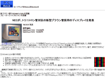 NECが、トリニトロン管対抗の新型ブラウン管採用ディスプレイを発表 など
