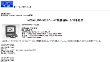 NECがPentium 133MHz/SVGA液晶搭載のノートPC発表 ほか