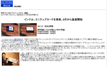 インテルが切手大のフラッシュメモリ「ミニチュアカード」を発表 ほか