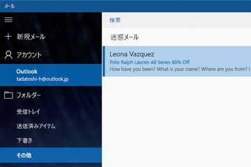 Windows 10基本ワザ - [メール]アプリで迷惑メールを振り分ける方法 ほか