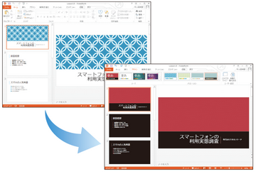 パワーポイントでデザインのバリエーション(背景や色)を変更する方法