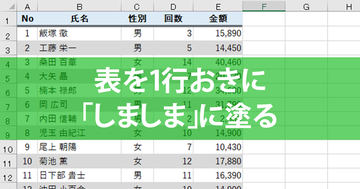 Excelの「しましま」ワザ3選。1行おきに色を塗って表を見やすく【エクセル時短】