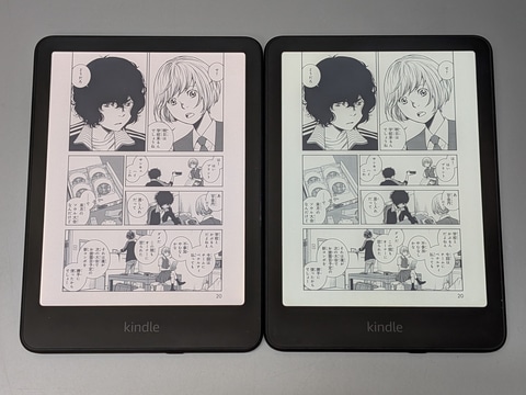 もっとも電子書籍のテキストやコミックはモノクロ表示がほとんどなので、影響はほぼ皆無……と言いたいところなのだが、実際にKindle Paperwhiteと比べてみると、本製品でのモノクロ表示は、JPEG圧縮を強めにしたようなブロックノイズが線の周りに表示されたり、モアレが目立つ場合がある。