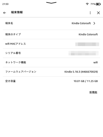なお唯一、バッテリの駆動時間については、Kindle Paperwhiteが12週間だったのが、本製品は8週間と、約3割減となっている。重量にほぼ変化がないことを考えると、バッテリ容量そのものが削減されたわけではなく、カラー化でより多くの電力が必要になり、結果的に駆動時間が減ったと見たほうがよさそうだ。