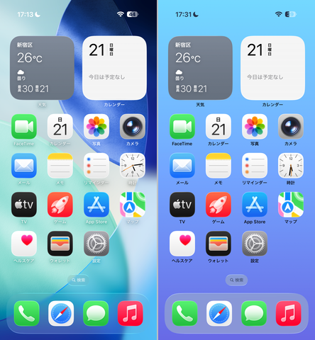 ちなみに出荷時点でLiquid GlassデザインのiOS 26を採用しているのは、本製品(およびiPhone 17シリーズ)が初だ。半透明のデザインやアニメーションエフェクトなど、かなり「ウザい」と感じる表現が多いが、これらを完全にオフにする方法はない。