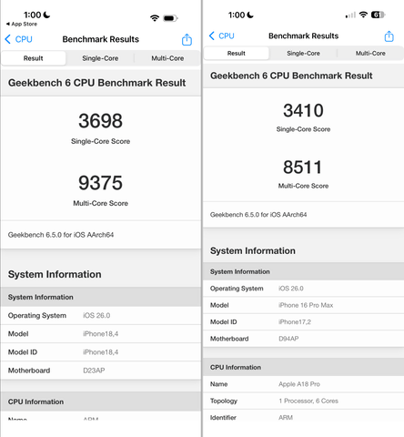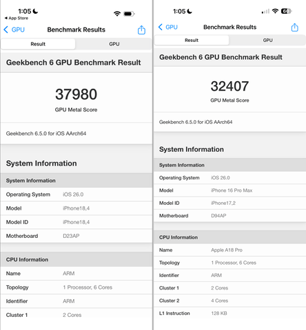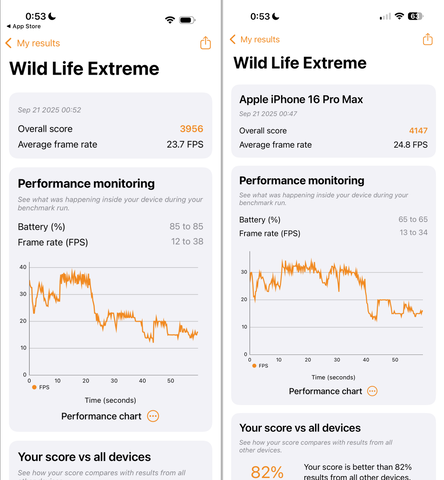 続いてベンチマークの値も掲載しておく。結論だけ言うとiPhone 16 Pro Maxとほぼ同等で、ベンチマークアプリによって多少前後はするものの、極端な差が付いているケースは見られない。「iPhone 16 Pro Max並」と称して差し支えないだろう。