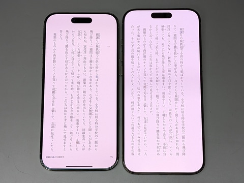 解像度は460ppiと、iPhone 16/17シリーズの各モデルと同一で、電子書籍ユースとしては文句のないクオリティ。明るさについても、最大輝度1,000cd平方/m(ここではnitではなくcd平方/mで表記)は従来通り、またピーク輝度3,000cd平方/m(屋外)はiPhone 17シリーズと共通で、従来のiPhone 16シリーズ(2,000cd平方/m)よりも向上している。