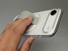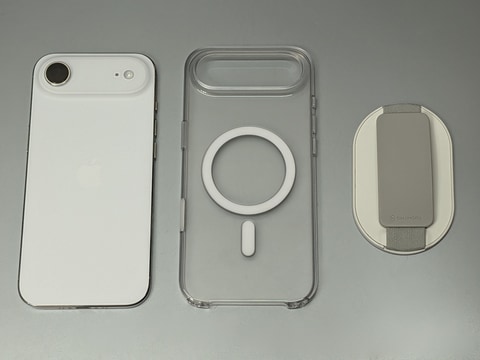 筆者の場合、今回は本体と同時に純正クリアケースを購入したため、これにMagSafe対応のバンドを磁力で吸着させて使っている。重量は217gまで増してしまうのだが、それでもPro Maxシリーズよりは軽いし、Pro Maxシリーズに同様の装備をさせると300gを超えるので、それらと比べるとずっと軽く、使っていても快適だ。