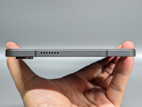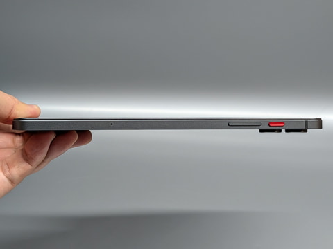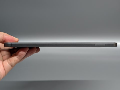 本製品は昨年紹介したSnapdragon 685搭載の8.4型タブレット「BPad Mini」の系譜に連なる製品で、サイズや重量はほぼ横並びだ。ボタン配置が変更されるなど設計は一新されているため、保護ケースなどのアクセサリは流用できないものの、見た目はそっくりだ。