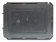 本製品は約178×368×260mm(幅×奥行き×高さ)と机の上に置いても圧迫感のないコンパクトなサイズが売り。この小型筐体に、操作部や端子類を目立たないように巧妙に実装している。まず本体右側面前部には電源ボタン、USB 3.0端子×2、マイク端子、スピーカー端子、本体上面前部には光学ドライブ、そして背面にはPS/2端子、USB 2.0端子×4、S/PDIF端子、Gigabit Ethernet、ラインイン端子、ラインアウト端子、マイク端子、DVI×1、HDMI出力×1、DisplayPort×3が配置されている。外付けドライブなどを増設するために背面にもUSB 3.0端子が欲しいところだが、まずまずインターフェイスは充実していると言えるだろう。ディスプレイを同時に4台接続できるのは、ゲーマーだけでなく、クリエイティブ系ユーザーにも嬉しいポイントではないだろうか。