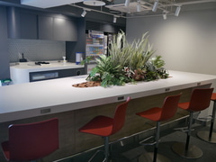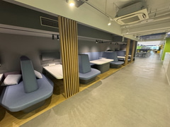 リニューアルのテーマは「OASIS」。未来的な空間に、有機的な要素を取り入れるとともに、緑や木目などを取り入れて、休憩時間にはリラックスしやすい環境を整えた。