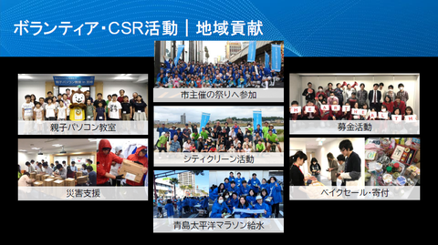 地域貢献活動にも積極的に取り組んでおり、地元主催のイベントへの参加や、シティクリーン活動、募金活動などへの参加のほか、災害支援活動も積極的に行なっている。2016年に発生した熊本地震では、社員有志が、熊本県の被災地に出向き、複数回にわけて災害ボランティア活動に参加。瓦礫撤去などの作業を行なったという。