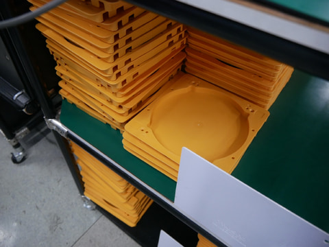「AMRの導入に向けて、部品棚を改良した。先入れ、先出しができ、効率が高く、省スペースで収納できるようにしている。すでに、AMRによる部品自動搬送のトライアルを開始している」とする。