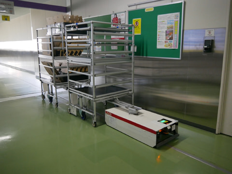 その取り組みの1つが、ガイドレスで搬送するAMR(自律走行搬送ロボット)の新規導入だ。