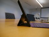 実は、膝の上でタイプするという使い方においては、キックスタンドにも工夫を凝らしている。Surfaceはキックスタンドによってキーボード入力時などに本体が自立できるようにしているが、新製品では、22度と44度という2段階の角度で設置できるようになった。とくに、新たに追加した22度という角度は、膝の上で入力する際に最適な角度として用意したものだという。