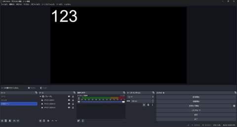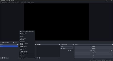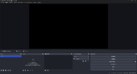 OBSの初回起動時はシーンが1つあり、ソースはなにも指定されていない。顔出しゲーム配信の場合、少なくともソースとしては、ゲーム画面とカメラ映像になる。