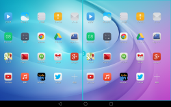 画面分割機能を呼び出すと、画面中央に分割線が表示され、表示領域が2分割される。そして、それぞれの領域に任意のアプリを起動して同時利用が可能となる。一部スマートフォンやタブレットでは、”スモールアプリ”と呼ばれるアプリを活用して、2種類のアプリの同時利用を実現しているものもあるが、T2 10.0 Proの画面分割機能では、専用アプリではなく、通常のアプリを2つ同時利用できるという点が大きな特徴となっている。