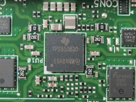 周辺にはほかの電源を生成していると見られるコイルもあるのだが、これは先ほど述べたCPUのほかの部分の電圧や、チップセット、メモリ用かもしれない。また、19V 1レーンの電源を複数の電圧レーンに分けられるTexas Instruments(TI)製の電源管理IC「TPS650830」も見える。いずれにしても、このCPU面の電源回路の実装はなかなか圧巻だ。