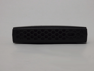 さて、いよいよ本体を見ていく。平べったい筐体は、天板のパターンや側面の吸気口など、あらゆるところでハニカム構造が取り入れられている。上から見たNUC6i7KYKのフォルムも一見ハニカムを髣髴とさせるが、よく見ると縦が短い八角形である。このほか電源ボタン、底面のプレートやゴム足に至るまで、あらゆるところで凝ったデザインが施されており、最上位にふさわしいカッコよさを備えている。