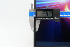 ベゼル幅を計測してみたところ、左右は5.43mm、上部は8.93mmだった。下部は計測が難しいこともあるが、ディスプレイを開いて正面から見た印象では、左右とほぼ同等の狭さとなっている。もちろん、このベゼル幅の狭さが筐体サイズの小型化に貢献しているのは言うまでもない。