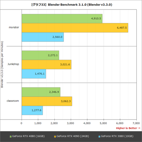Blender Benchmark 3.1.0では、標準で用意されている3つのシーン(monster、Junkshop、classroom)をテストした。テストに用いたBlenderのバージョンは「3.3.0」。
