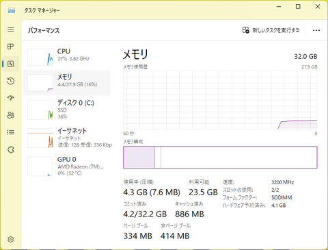 | 搭載メモリ (空きスロット、最大) | DDR4-3200 SO-DIMM 16GB×2(なし、64GB) |