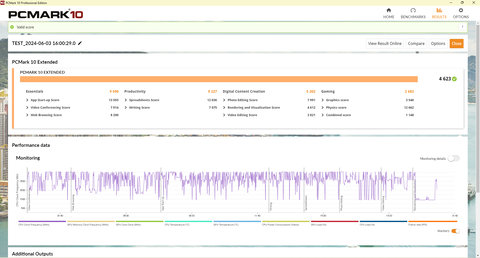目安として、よく利用されるアプリを実行して性能を検証できる「PCMark 10」を実行したときの結果は下記の通りだ。総合Scoreは4,000台半ばで、ビデオカードを搭載しないPCの中では平均的な数値だ。一方でWindows 11の使用感や軽作業に関するEssentialsやProductivityの数値は、上位CPUを搭載するモデルとほぼ同等であり、上記の軽作業に関する使用感を裏付ける結果となった。
