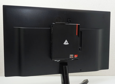 付属するVESAマウントキットを使えば、液晶モニターや一部の液晶TVが装備するVESAマウンタを利用し、背面に固定することも可能だ。筆者的に特におすすめしたいのが、VESAマウンタを装備する液晶TVとの組み合わせである。