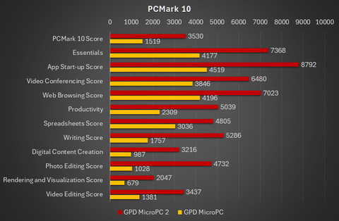 いろいろ使い勝手を述べたが、実はGPD MicroPC 2の最大の進化点は、そのパフォーマンスにある。初代のCeleron N4120に対し、本機はIntel N250プロセッサを搭載。メモリは6GB LPDDR4から16GB LPDDR5へ、ストレージもSATA接続の128GB SSDから高速なPCIe 3.0 x4接続の512GB SSDへと、あらゆる面でスペックが向上している。公式によれば、CPUは3倍、GPUは5倍になっているとのことだ。