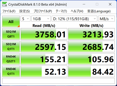 もう1つ、M.2スロットの通信帯域も違う。S1を含めたほとんどのN100搭載ミニPCが装備するM.2 SSDの帯域は、PCIe 3.0 x2までとなる。そのためどんなに高速なSSDを組み込んでもシーケンシャルリード/ライトは1.7GB/sでほぼ頭打ちになる。しかしNucBox G10はPCI Express 3.0 x4までの対応なので、3.5~3.7GB/sまで高速化する。ストレージの速度は操作感にも影響しやすいため、見逃せないポイントだ。