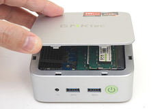 このサイズ感のミニPCだとメモリは基板に直付けであることも多いのだが、NucBox G10ではメモリスロットタイプなので大容量タイプに換装することが可能。また増設用のM.2スロットを備えており、合計2枚のM.2 SSDを組み込むことも可能など、コンパクトながら一般的なミニPCに勝るとも劣らない拡張性にちょっと驚いた。