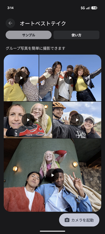 Pixel 8シリーズで登場した「ベストテイク」を進化させた「オートベストテイク」では、集合写真撮影時に数秒間で最大150枚のフレームから全員の最適な表情を抽出し、自動で合成して写真を作り上げる機能。従来のベストテイクでは集合写真撮影後に編集する必要があったが、オートベストテイクならシャッターボタンを押すだけで、その場で自動的に処理され最適な集合写真ができあがる。これは、かなり利便性が高まったと感じる。