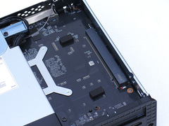 CPUファンの前側にはM.2スロットが2基用意されている。うち空きの1基はWi-Fiカードとは2階建て構造になり、接続もPCIe 4.0 x1とバス幅が限定される。なお既にSSDが装備されているM.2スロットは4.0 x4接続だ。
