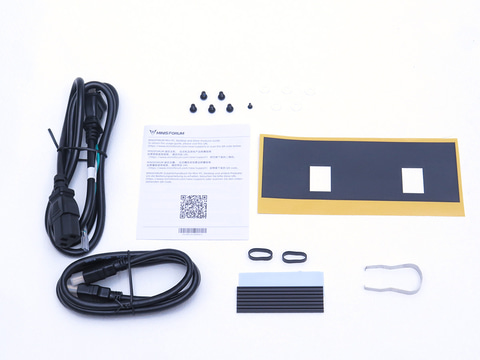それではさっそくMS-S1 MAXを見ていこう。本体の箱はこれまでの同社のミニPCラインナップの中では大きい部類に入る。内容物は本体のほかに電源ケーブル、HDMIケーブル、固定用ネジ類(100mmピッチのVESA、またはラック設置時固定用)、M.2 SSD用ヒートシンク、そしてPCIe拡張カードから基板を保護するための絶縁シートが添付されていた。ACアダプタが付属されていないが、これは本機が電源を内蔵しているためである。