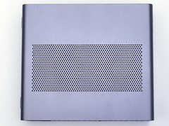 筐体は分厚い金属で囲まれており、堅牢性はかなり高い印象を受ける。前面はダイヤモンド状のメッシュとなっているほか、背面および本体上部(横置き時)にも多くの通気孔が用意されており、排熱にかなり気を配っているのが分かる。デザイン的にはシンプルで、特に前面はラックマウントサーバーを彷彿とさせるものがある。