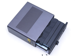 10GbEを2基搭載する点も本機ならでは。10GbEが2基という特徴自体は、同社初のミニワークステーションで搭載されたが、この際のポートはSFP+で、接続する際にはSFP+モジュールを別途購入する必要があった。もちろん、光ファイバを使う10GBASE-SRや10GBASE-LRといった接続方法が選べるという意味ではSFP+の方が自由度が高いが、一般企業や家庭内においては銅線を使う10GBASE-Tの方が、既存の機器との親和性が高く、ケーブルも一般的な家電量販店で購入しやすい。この10GBASE-TのSFP+モジュールが比較的高価だ。その意味で、本製品は最初から10GBASE-Tの10GbEポートが2基搭載されているので親切だ。