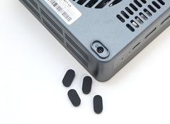 最後に内部へのアクセス方法を解説しよう。底面にある4カ所のゴム足は両面テープで貼られており、まずはこれを剥がす。すると底面のプレートを固定しているネジが見えるようになるので、このネジを外そう。