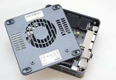 ひっくり返して底面を見ると、吸気用のスリットの奥に吸気用のファンが見える。メモリとM.2 SSDは底面側に組み込む構造であり、これらのパーツを冷却するためのファンである。こちらのファンも、UEFIからかなり細かく回転数の調整が可能だった。