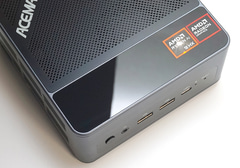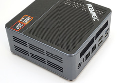 幅は132mm、奥行き130mm、厚みは61mmとサイズ感は一般的なミニPCと同じで置き場所を選ばない。デザインも秀逸なので、リビングなどに設置している大画面TVと組み合わせてもよいだろう。ちなみにこの美しい鏡面パネルにはAMDのシールが2枚貼られている。本体の美しさとデザインを重視するなら、目立たない底面に貼り直したい気持ちもある。