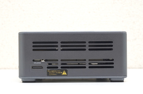 左側面にはOCuLinkを搭載する。OCuLinkはコネクタが大きく、ケーブルも曲げにくいので、左側にそれなりのスペースを確保する必要があり、正直ちょっと使いにくい位置ではある。ただあるのとないのとではグラフィックスやAI活用の可能性に大きな違いが出てくるため、このクラスのミニPCであれば必須とも言える装備だ。