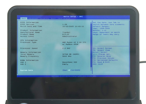 今回紹介する「G-FLIP」シリーズでは、搭載CPUが異なるいくつかのモデルをラインナップしているが、今回検証したのはRyzen AI 9 HX 370を搭載する上位モデル、G-FLIP AI370だ。試用したのがベアボーンPCタイプだったので、検証時は2基の16GBメモリ(PC5-44800対応)と、1TBのM.2 SSDを組み込み、Windows 11をインストールした。