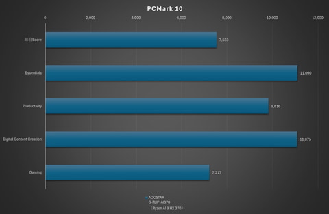一般的なアプリの使用感を検証できる「PCMark 10 Extended」では、総合Scoreが7,500を超えており、CPU内蔵GPUを利用するスタンダードなミニPCの中ではトップクラスに位置する。3D描画性能を検証できる「3DMark」の結果も同様だった。