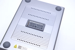 この課題に対して、ME Proは“ダブルサイド防振シリコンプラグ”で解決。HDDを固定するブラケットのネジ穴に、厚みのあるシリコンワッシャーを配置し、そこにネジを通してHDDを固定しても、シリコンによってHDDがトレーから“浮いた”状態を保つようにしているのだ。また、本体底面のゴム足も大きく、うまく振動を吸収するようになっている。