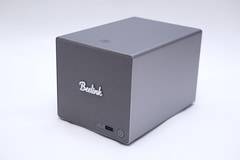 だがME Proはその真逆を行くアプローチだ。先述の通り、本製品のHDDベイは背面から着脱し、なおかつネジで留められており、容易には着脱できないようにした。前面はファブリック素材が貼られた一枚板、その上に削り出しで筆記体のBeelinkロゴが配されている。上下左右はオールメタルのユニボディとなっており、メンテナンス性とは引き換えに、デザイン性と質感がかなり高い。