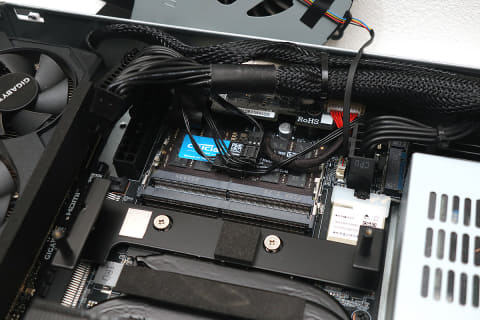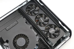マザーボードについて、ヒートシンクまでは分解していないので多くは語れないのだが、PCIeスロットが基板に対して一般的な垂直配置ではなく水平配置になっているのが特徴だといえるだろう。そしてその先にビデオカードが接続されているわけだ。また、M.2スロットもマザーボードの横から出ており、厚みのあるヒートシンクを装備したSSDも装着可能となっている(付属のヒートシンクも厚め)。