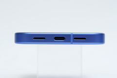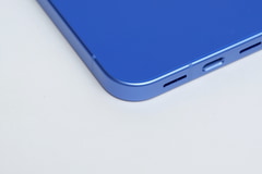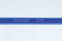 実際の色は、藍色に近いような深い青という印象。そして、側面、背面ともマット処理と相まって、見る角度によって明るい青や紫に近い青と表情を変える。