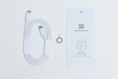 製品パッケージには、USB 2.0 Type-CケーブルとSIMトレイ取り出し用のピンが付属する。